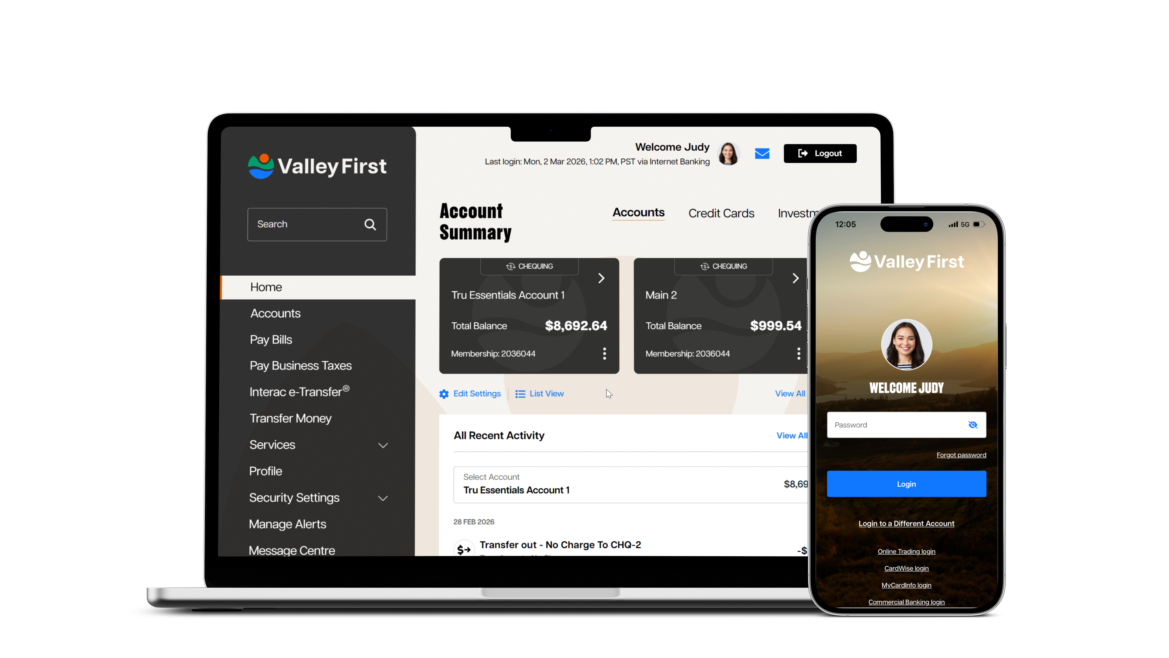 We're also refreshing our website in May, with easier navigation and a cleaner look that better reflects Valley First's connection to Tru Cooperative Bank and its group of brands across B.C.
