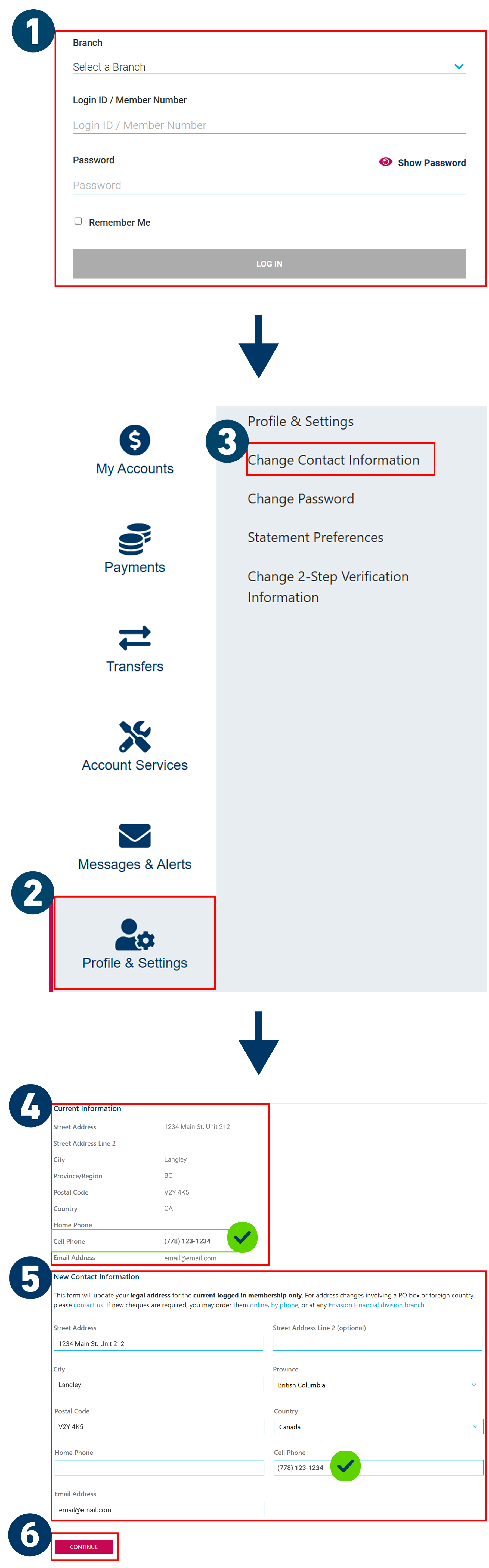 Prepare now by ensuring your email address and cell phone number are up-to-date. Log in to the desktop version of online banking (not the mobile app), click on Profile & Settings, click on Change Contact Information then verify that your current cell phone number and email address are correctly entered in the designated fields.